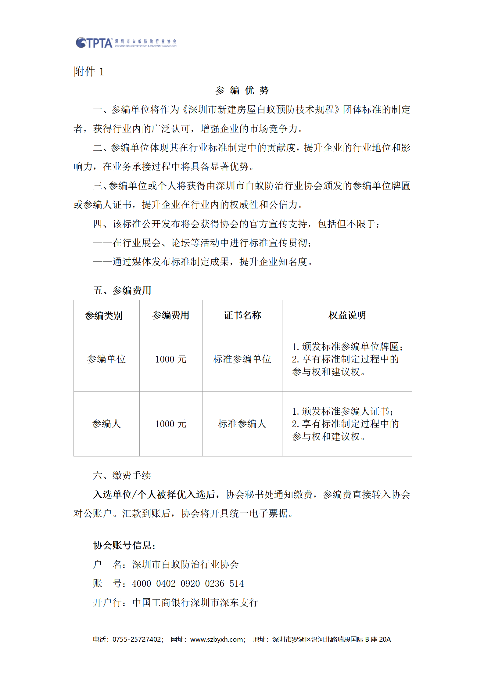 关于补充征集团体标准《深圳市新建房屋白蚁预防技术规程》参编单位和个人的通知