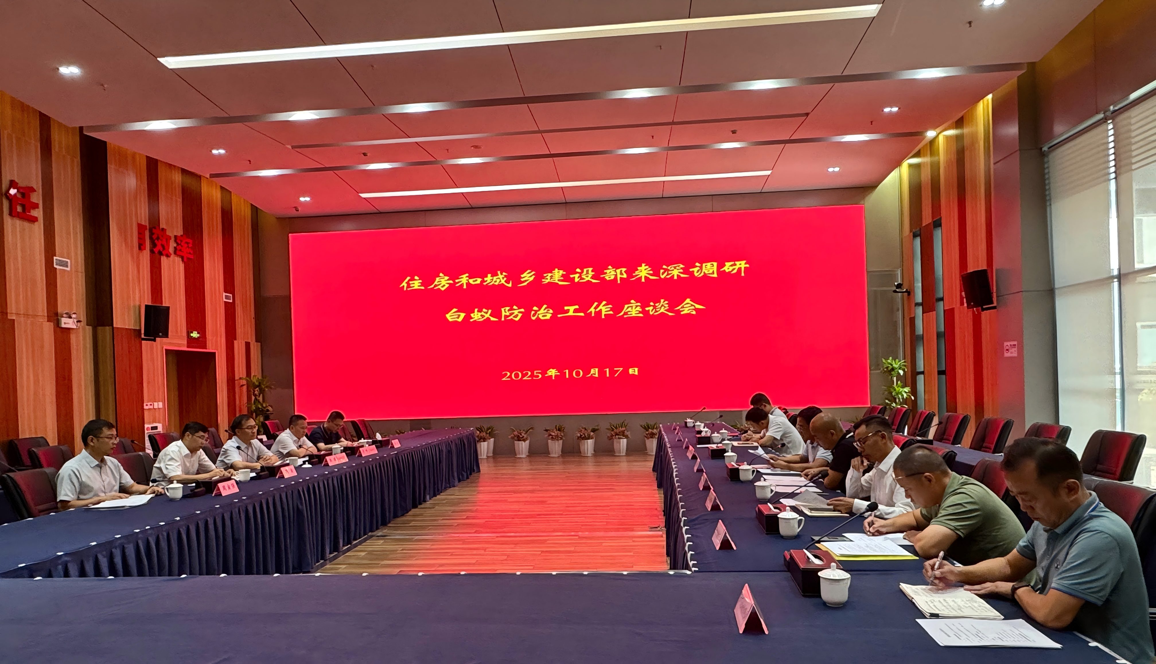 10月17日上午,国家住建部工程质量安全监管司一级巡视员兼全国白蚁防治中心党委书记韩煜带队赴深,围绕贯彻落实中央城市工作会议精神、推动白蚁防治工作高质量发展等工作开展调研。